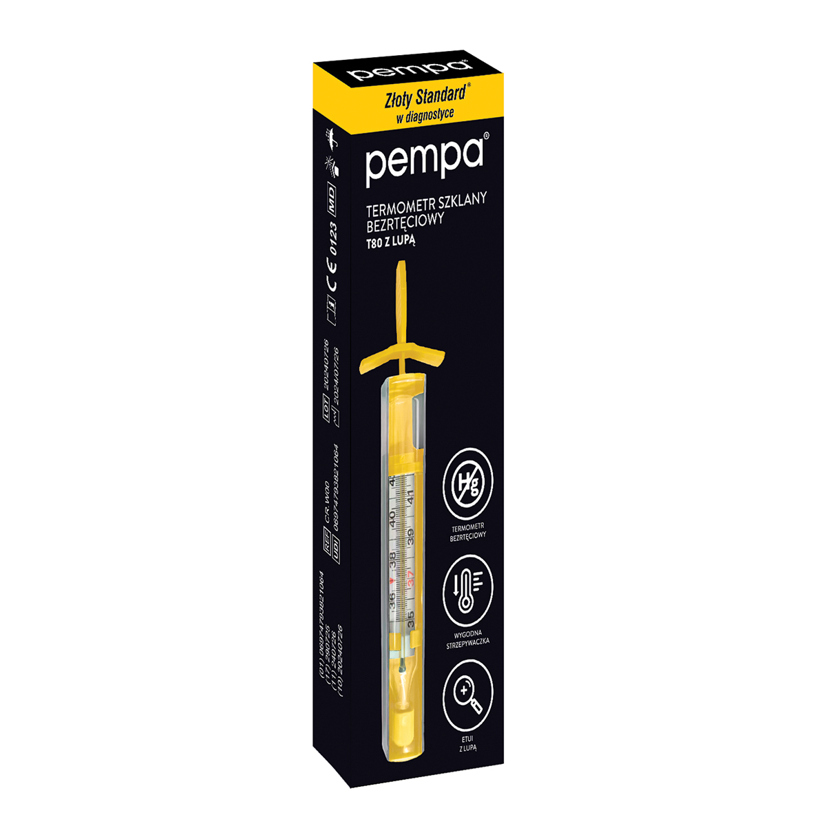Pempa T80 Termometr bezrtęciowy szklany z lupą